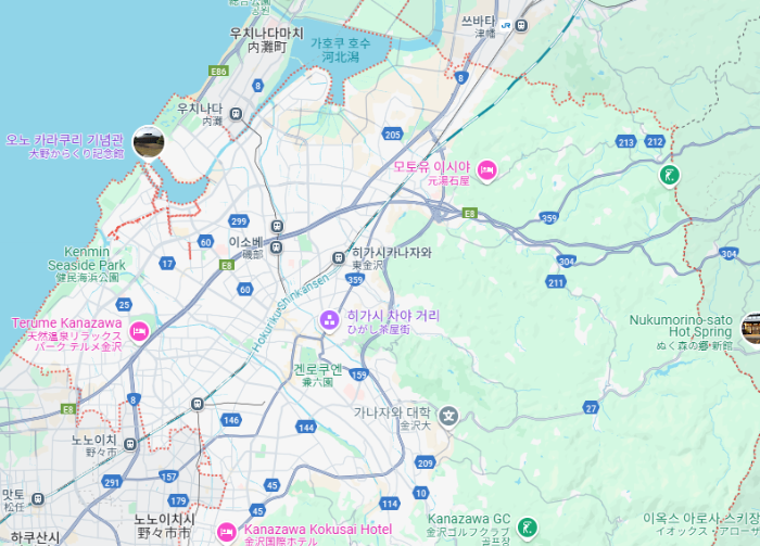 일본 가나자와 위치 지도