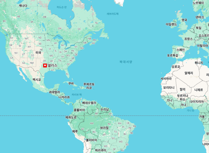 대한민국 서울을 기준으로 미국 '댈러스'까지의 거리는 약 10,968km, 비행시간은 13시간 내외, 시차는 14시간 느립니다.