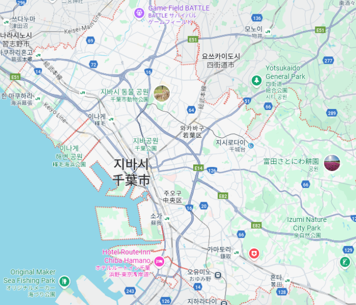 지바시'Chiba'는 일본 치바현 중서부에 위치한 도시로, 일본의 수도 '도쿄'의 위성도시 역할을 하지만 상대적으로 여유롭고 바닷가 분위기를 더욱 느낄 수 있어 많은 관광객이 찾아오는 인기여행지입니다.