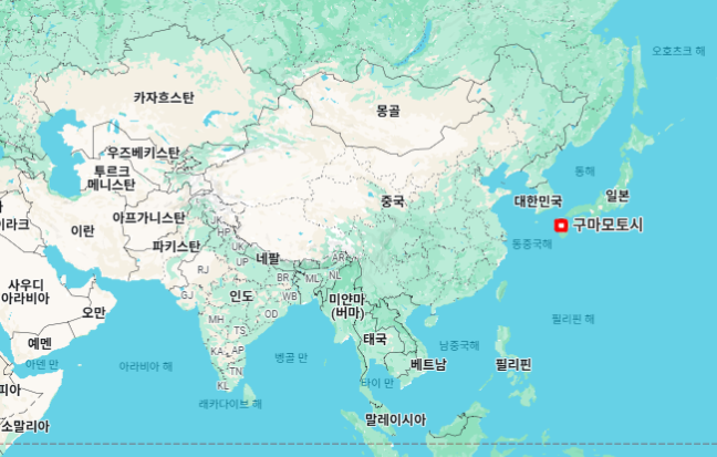 지금부터 일본 구마모토시 지도 위치와 계절별 기후, 그리고 인기 여행지를 간단히 살펴보겠습니다.