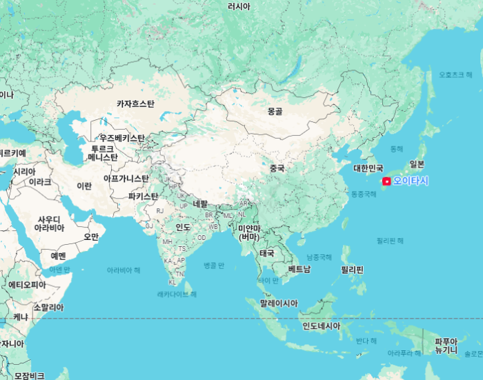 서울을 기준으로 일본 오이타현 '오이타시'까지의 거리는 약 635km이며, 비행시간은 2시간 내외, 시차는 없습니다.