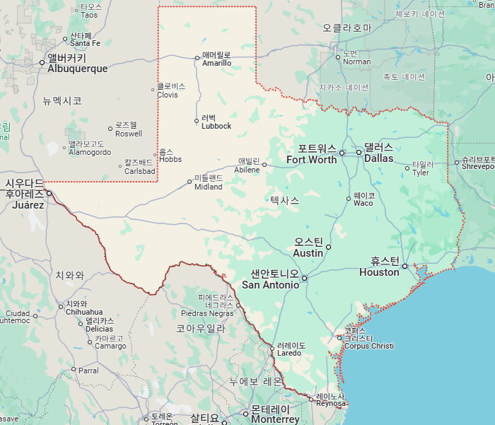텍사스'Texas'는 미국 대륙의 중남부에 위치한 주로, 미국에서 알래스카주 다음으로 넓은 면적인 69.5만㎢(대한민국의 약 7배), 인구 약 3,097만 명입니다.