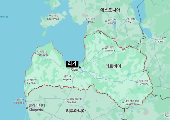 대한민국 서울을 기준으로 라트비아 수도 '리가'까지의 거리는 약 7290km, 시차는 7시간 느립니다.