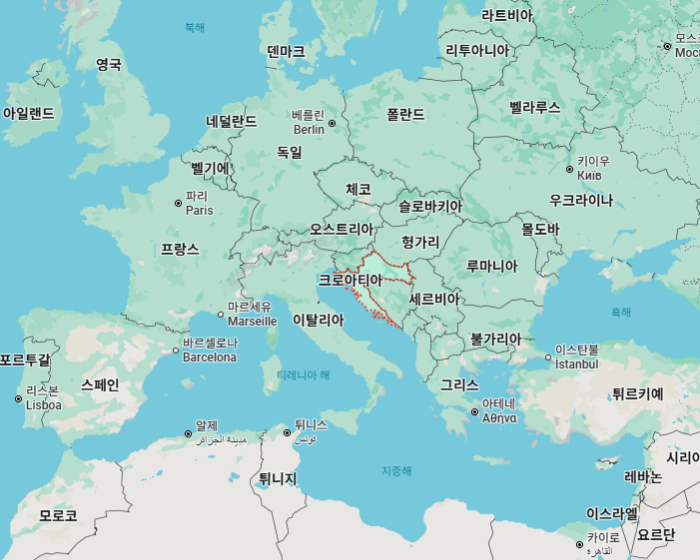 크로아티아'Croatia'는 유럽 남부에 위치한 국가로, 면적 약 88,070㎢(세계 128위), 인구 384만 명(세계 128위), GDP 약 989억 달러(세계 72)입니다.