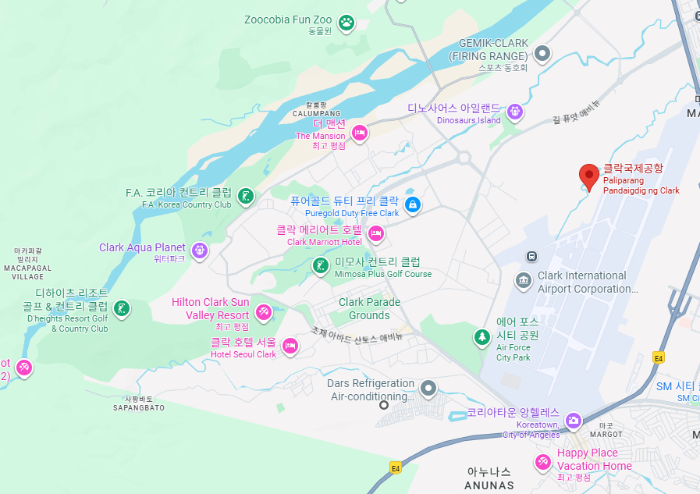 클락 국제공항 주변에 위치하고 있는 관광특구로 고급 리조트와 골프장 그리고 쇼핑몰 등의 상업 시절이 밀집되어 있는 인기 여행지입니다.